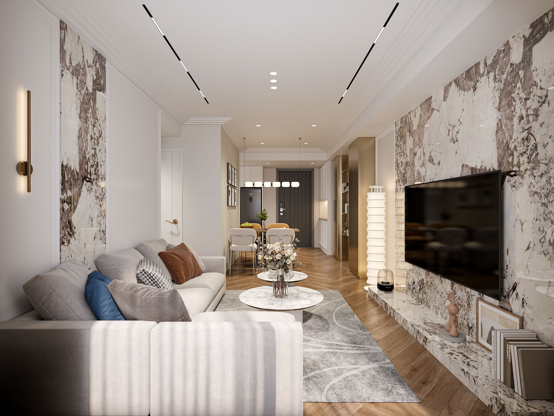 一座挑高大器門廳,將美的低調與奢華,深深刻在空間之上,藉由借景、引景的藝術手法,讓視野擁有更多變化,通透的空間格局,透過不同材質表現細緻典雅,玻璃、石材、金屬板材、水晶吊燈相互搭配,散發由內而外的動人氣質,成就洗滌塵囂的完美過場。
