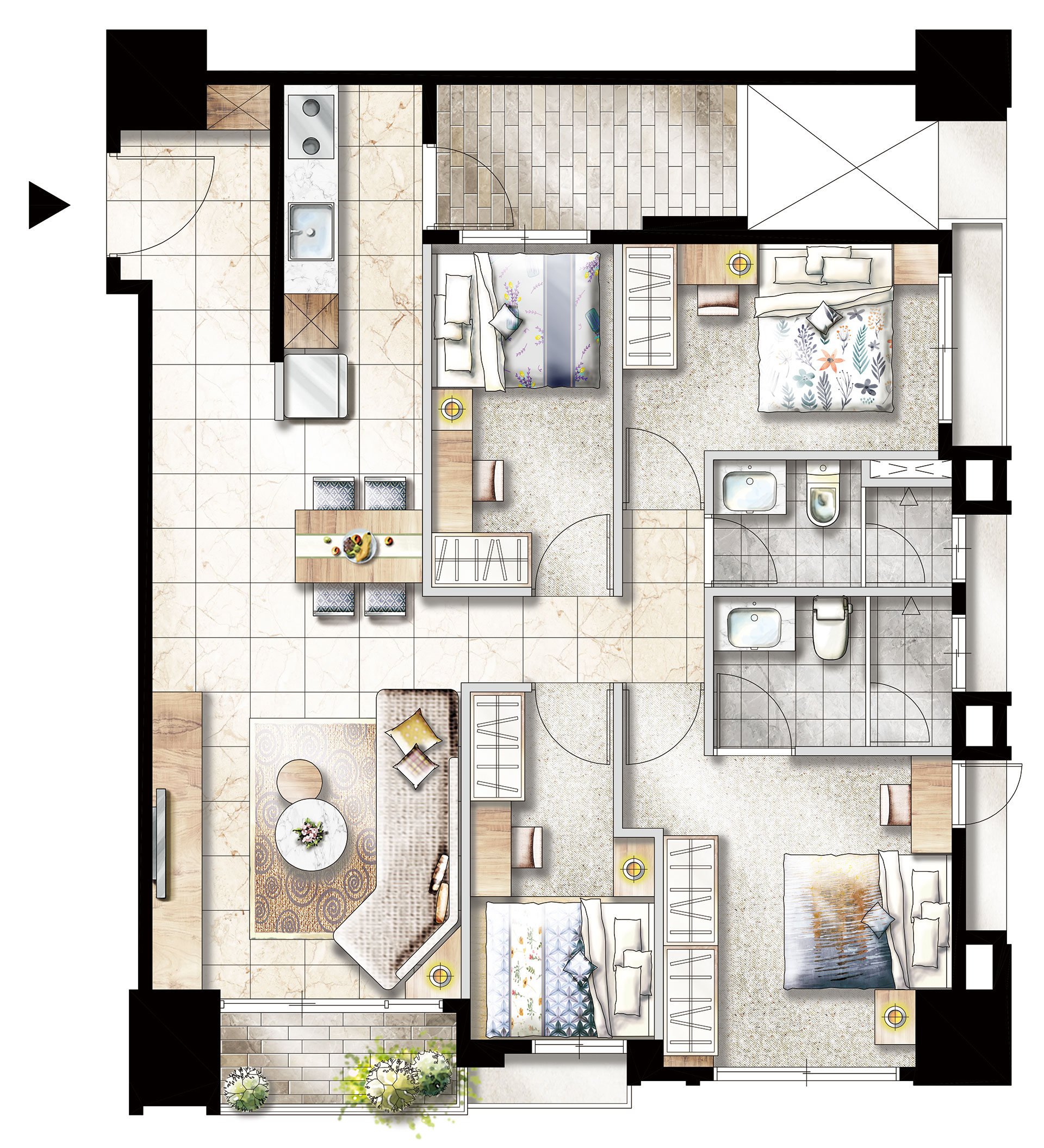 以上圖片皆為3D裝修模擬示意圖,公司保有修改之權利。