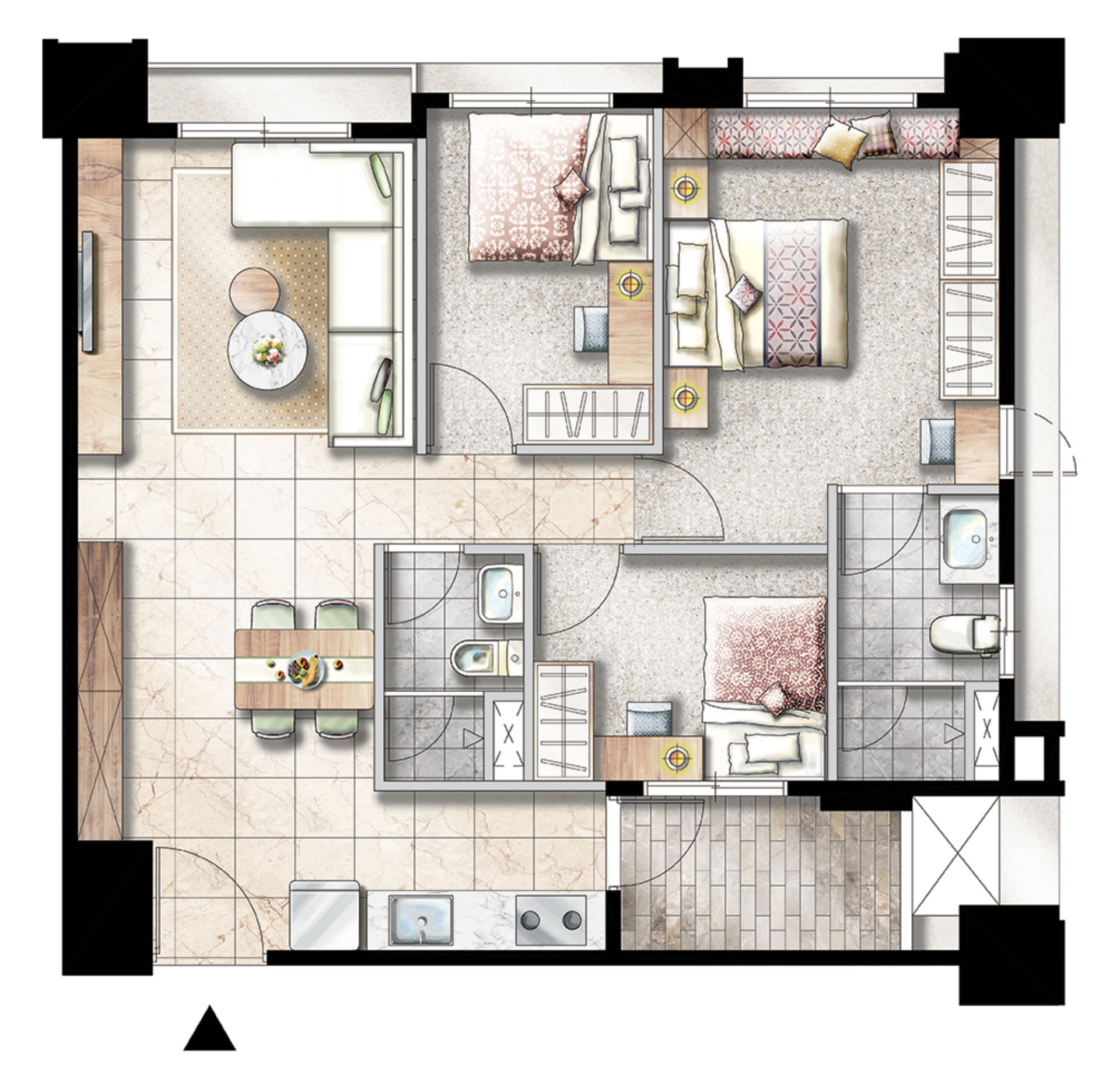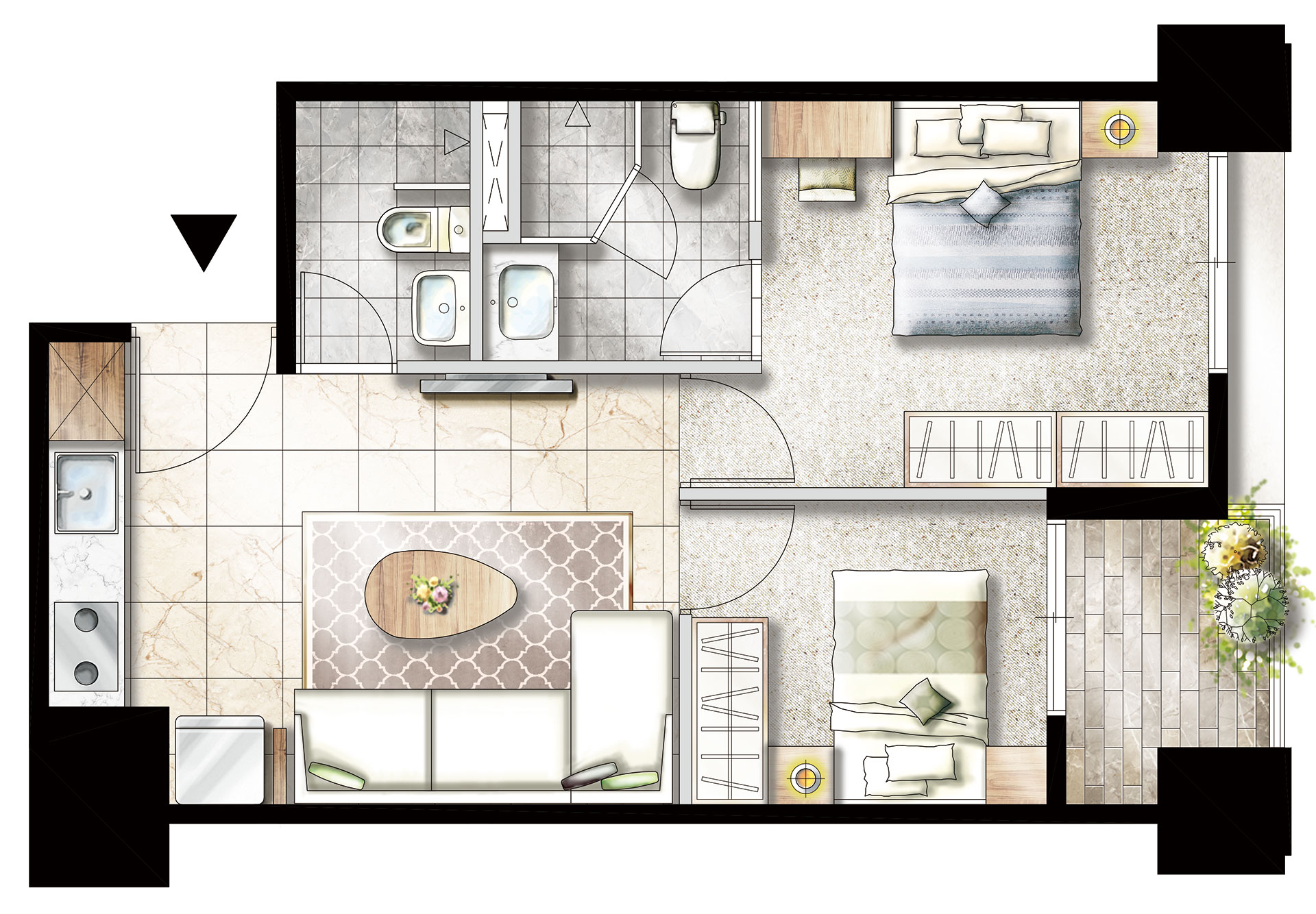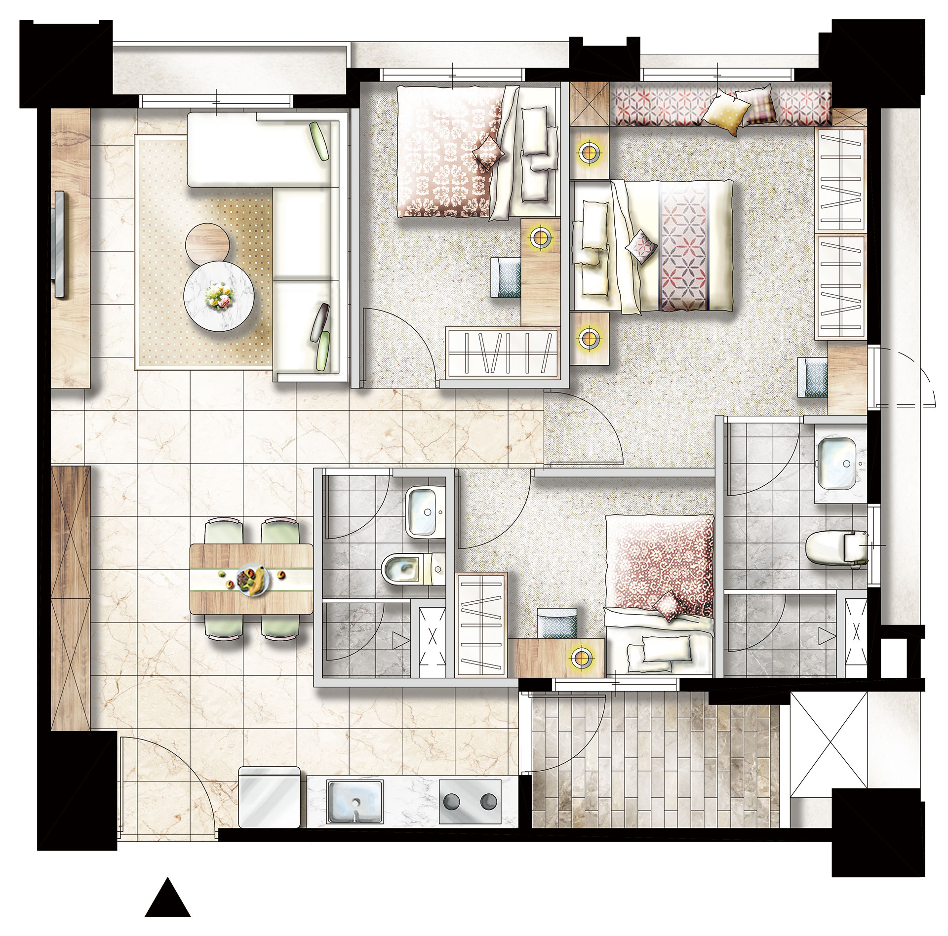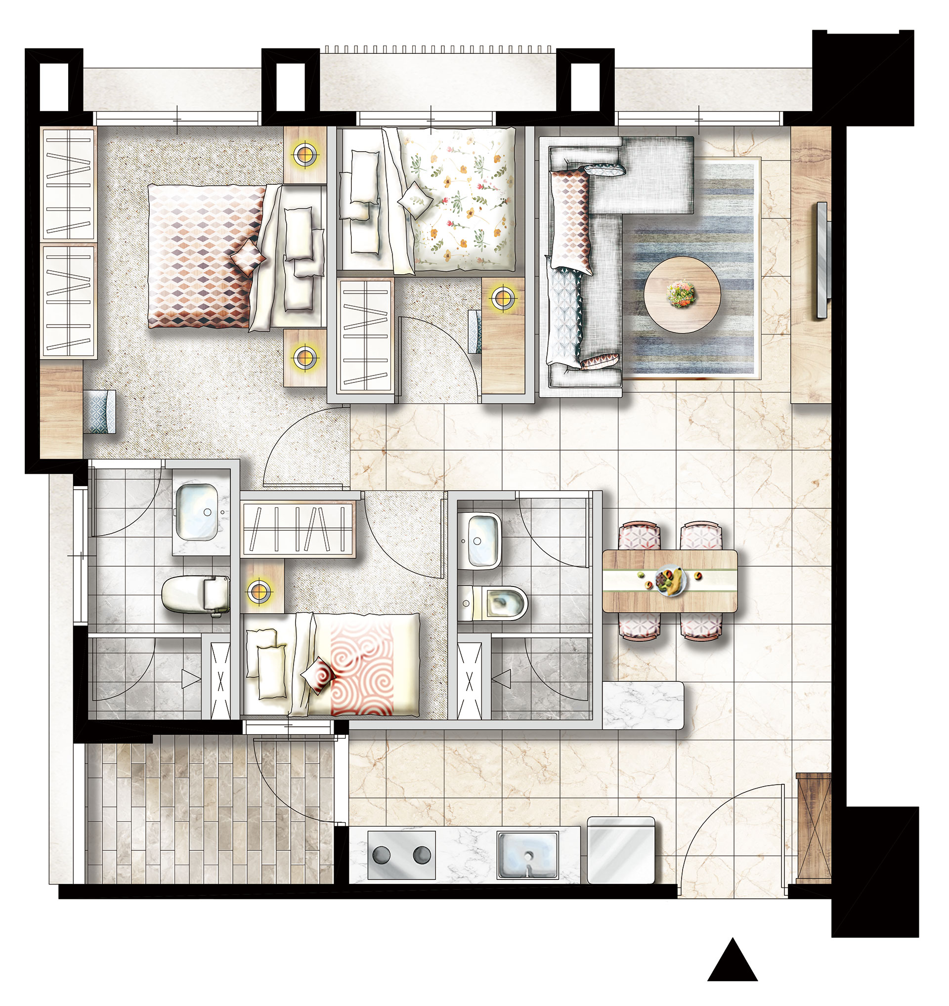 本平面配置圖,實際規劃與建材以合約書建造執照核準圖為準。公共空間設計內容及景觀配置,建設公司保有美化修改權。