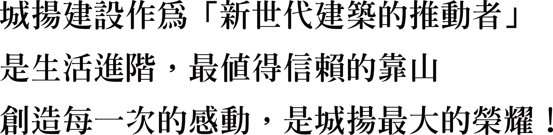 創立於民國83年,建築本科專業起家,城揚集團董事長-楊振宗,作為新世代建築的推動者,成就無數經典業績,以精湛的工藝和頂級建築實力,成就高雄港都的建築風範。